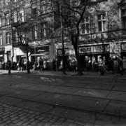 Skrzyżowanie ul. Marchlewskiego (obecnie al. Niepodległości) z ul. Chudoby (obecnie ul. Taylora) z budynkiem Zachodniej Dyrekcji Okręgowej Kolei Państwowych, wejście do Domu Kultury Kolejarza01.11.1981