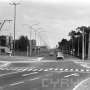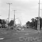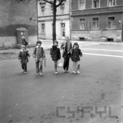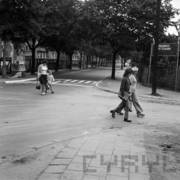 Akcja Milicji Obywatelskiej pod hasłem "Dziecko na drodze", przejście dla pieszych przy ul. Kraszewskiego, w oddali perspektywa ul. Słowackiego