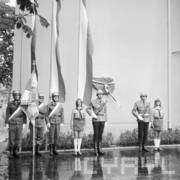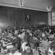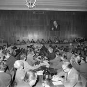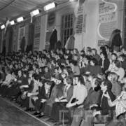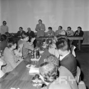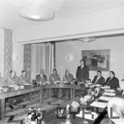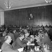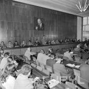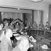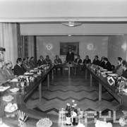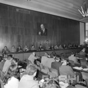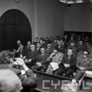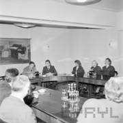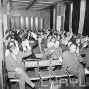 Spotkanie członków Związku Młodzieży Socjalistycznej i komunistycznej organizacji młodzieży ZSRR (Komsomoł) w siedzibie Wojewódzkiej Rady Narodowej (dzisiaj Wielkopolski Urząd Wojewódzki)
