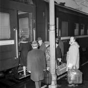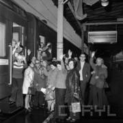 Pasażerowie Pociągu Przyjaźni na peronie dworca Poznań Główny