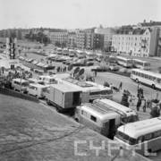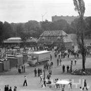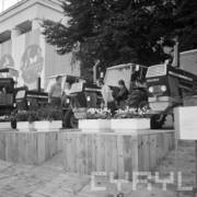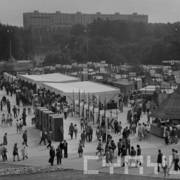 Wystawa wieńców dożynkowych przed budynkiem Wojewódzkiej Rady Narodowej (obecnie Urząd Wojewódzki) przy al. Stalingradzkiej (obecnie al. Niepodległości)