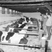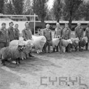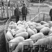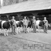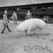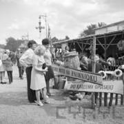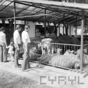 Grupa zwiedzających Wystawę Zwierząt Hodowlanych i Eksportowych na terenie Naramowic