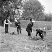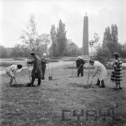 Członkowie delegacji FNJ Bułgarii sadzą pamiątkowe drzewka na Cytadeli, w tle Pomnik Bohaterów