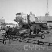 Kombajn Bizon Z050 prezentowany podczas wystawy sprzętu rolniczego towarzyszącej Centralnym Dożynkom, które w 1974 roku zorganizowano w Poznaniu