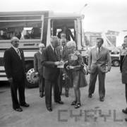 Przedstawiciele władz państwowych i wojewódzkich podczas Centralnych Dożynek na parkingu przed Stadionem im. 22 Lipca