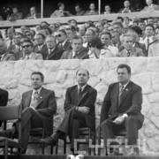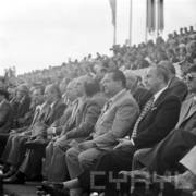 I sekretarz KC PZPR Edward Gierek, prezes Rady Ministrów Piotr Jaroszewicz oraz I sekretarz KW PZPR w Poznaniu Jerzy Zasada podczas Centralnych Dożynek na Stadionie im. 22 Lipca
