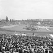 I sekretarz KC PZPR Edward Gierek oraz przewodniczący Rady Państwa Henryk Jabłoński podczas uroczystości Centralnych Dożynek na Stadionie im. 22 Lipca