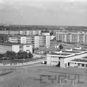 Bloki na os. Piastowskim przy ul. Szczytnickiej, dalej blok na os. Rzeczpospolitej, w oddali budowa "deski" na os. Powstań Narodowych