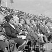 I sekretarz KC PZPR Edward Gierek, prezes Rady Ministrów Piotr Jaroszewicz oraz przewodniczący Rady Państwa Henryk Jabłoński podczas Centralnych Dożynek na Stadionie im. 22 Lipca