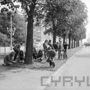 Akcja Milicji Obywatelskiej pod hasłem "Dziecko na drodze", przejście dla pieszych przy ul. Kraszewskiego nieopodal ul. Słowackiego