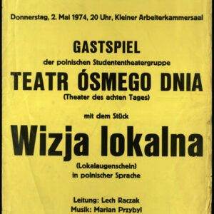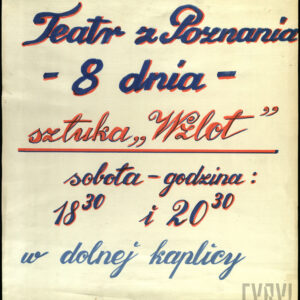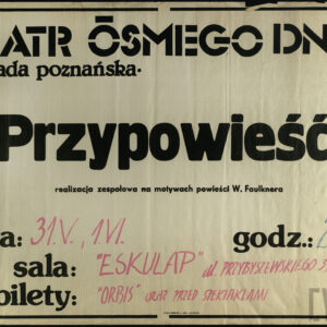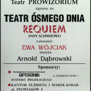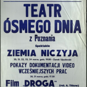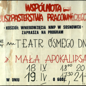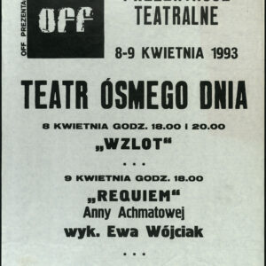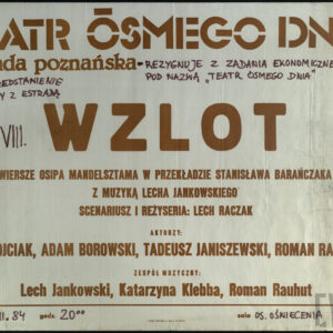 1984Plakat spektaklu Wzlot Teatru Ósmego Dnia w reżyserii Lecha Raczaka na podstawie poezji Osipa Mandelsztama w kościele św. Klemensa we Wrocławiu