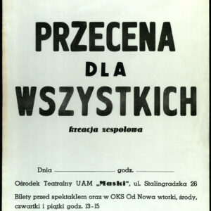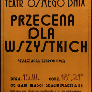 1980Adam Borowski, Tadeusz Janiszewski, Roman Radomski, Małgorzata Walas, Tomasz Stachowski, Teresa Puto, Waldemar Modestowicz, Ewa Wójciak i Marcin Kęszycki w spektaklu Przecena dla wszystkich Teatru Ósmego Dnia