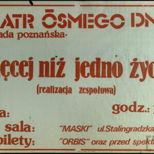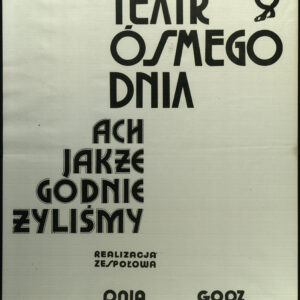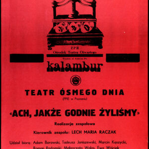 11.11.1976Afisz spektaklu Ach, jakże godnie żyliśmy Teatru Ósmego Dnia w Ośrodku Teatru Otwartego Kalambur we Wrocławiu
