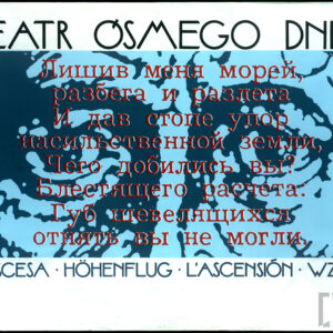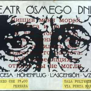 05.1986Plakat spektaklu Wzlot Teatru Ósmego Dnia w reżyserii Lecha Raczaka na podstawie poezji Osipa Mandelsztama w Ferrarze