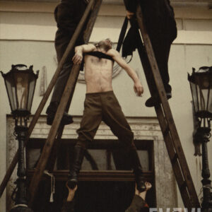 1975Tadeusz Janiszewski, Adam Borowski i Tomasz Stachowski w przedstawieniu ulicznym Mięso Teatru Ósmego Dnia