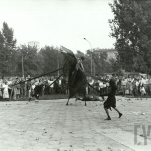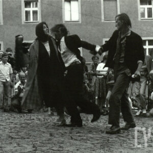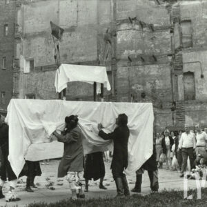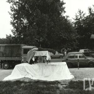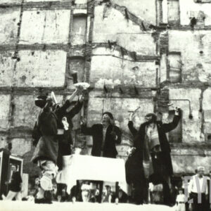 1989Tadeusz Janiszewski, Ewa Wójciak, Adam Borowski i Marcin Kęszycki w przedstawieniu ulicznym Mięso Teatru Ósmego Dnia