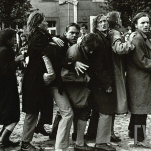 1989Tadeusz Janiszewski, Adam Borowski, Marcin Kęszycki, Ewa Wójciak i Daria Anfelli w przedstawieniu ulicznym Mięso Teatru Ósmego Dnia