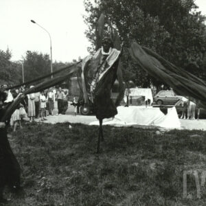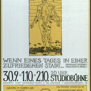 1982Plakat spektaklu ulicznego Jeśli pewnego dnia w mieście szczęśliwym… Teatru Ósmego Dnia w Malmö w Szwecji