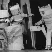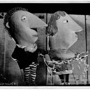 28.01.1961Kukła Piekielnego Piotrusia (z lewej) i Hermenegildy Kociubińskiej ze spektaklu lalkowego Bal u profesora Bączyńskiego Konstantego Ildefonsa Gałczyńskiego