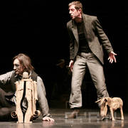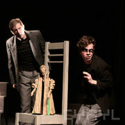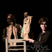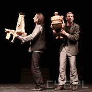 13.03.2011Piotr Grabowski i Marcin Chomicki w spektaklu lalkowym Proces o cień osła według słuchowiska Friedricha Dürrenmatta