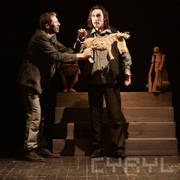 13.03.2011Marek Cyris i Piotr Grabowski w spektaklu lalkowym Proces o cień osła według słuchowiska Friedricha Dürrenmatta