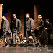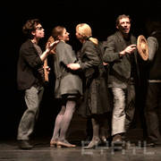 13.03.2011Marcin Chomicki, Aleksandra Leszczyńska, Magdalena Dehr i Piotr Grabowski w spektaklu lalkowym Proces o cień osła według słuchowiska Friedricha Dürrenmatta