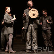 13.03.2011Aleksandra Leszczyńska, Piotr Grabowski i Artur Romański w spektaklu lalkowym Proces o cień osła według słuchowiska Friedricha Dürrenmatta