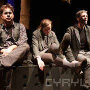 13.03.2011Marek Cyris, Krzysztof Dutkiewicz i Piotr Grabowski w spektaklu lalkowym Proces o cień osła według słuchowiska Friedricha Dürrenmatta