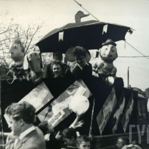 1961Lalki ze spektaklu Bal u profesora Bączyńskiego Teatru Lalki i Aktora Marcinek na pochodzie pierwszomajowym