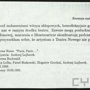 Nota prasowa dotycząca spektaklu "Paris, Paris... Piosenki znad Sekwany"