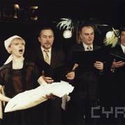 Ildefons Stachowiak, Mariusz Sabiniewicz i Katarzyna Pawlak w spektaklu „Don Juan, czyli Kamienny Gość"