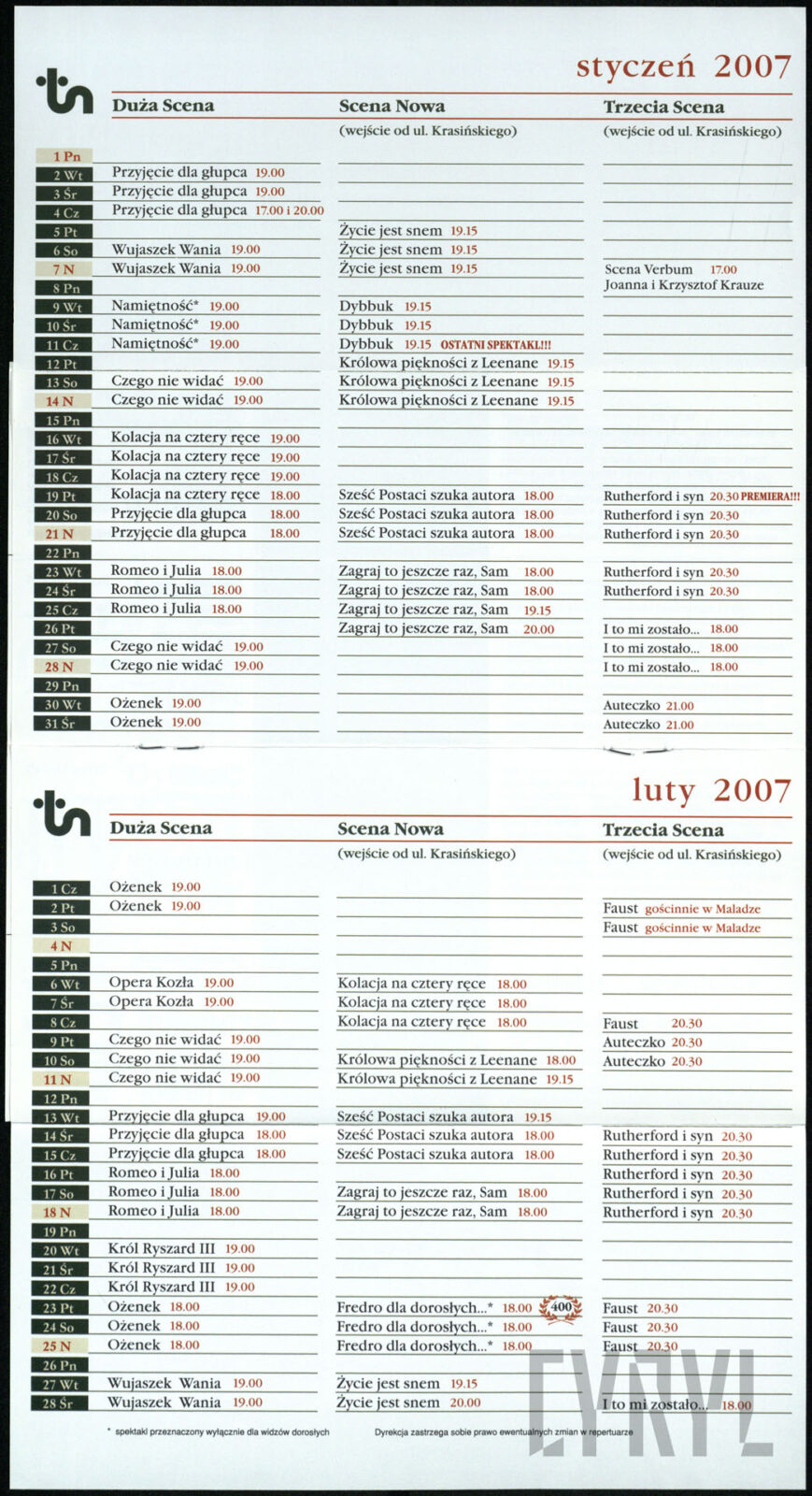 Repertuar Teatru Nowego w styczniu i lutym 2007 roku