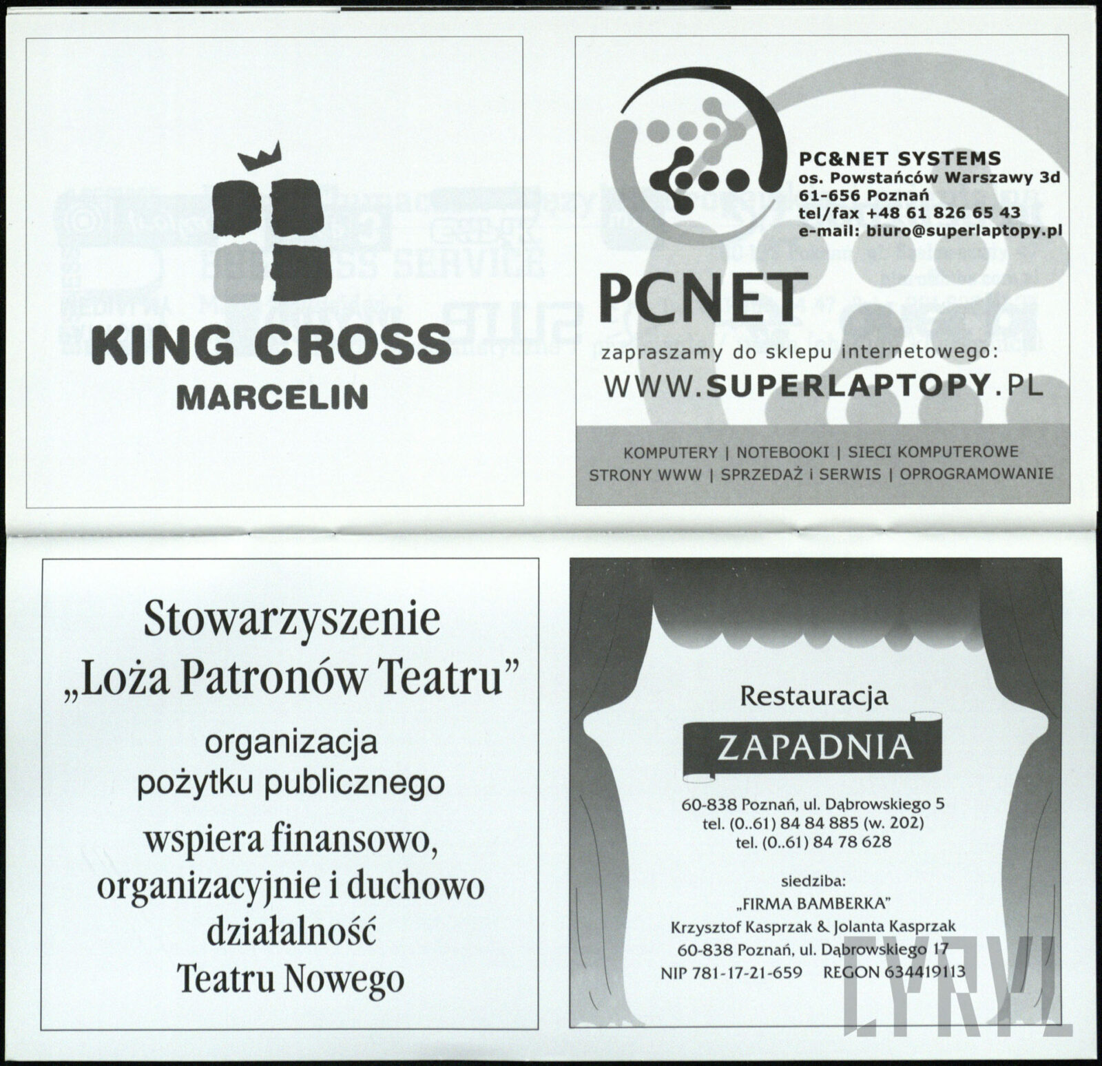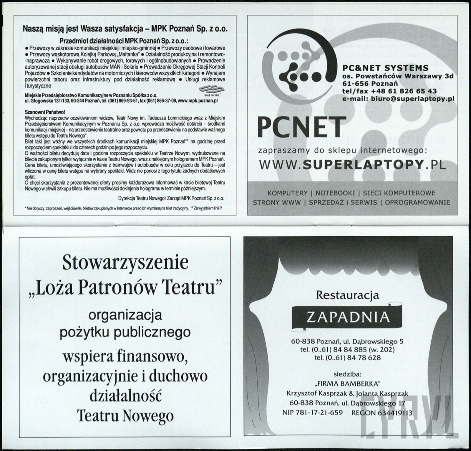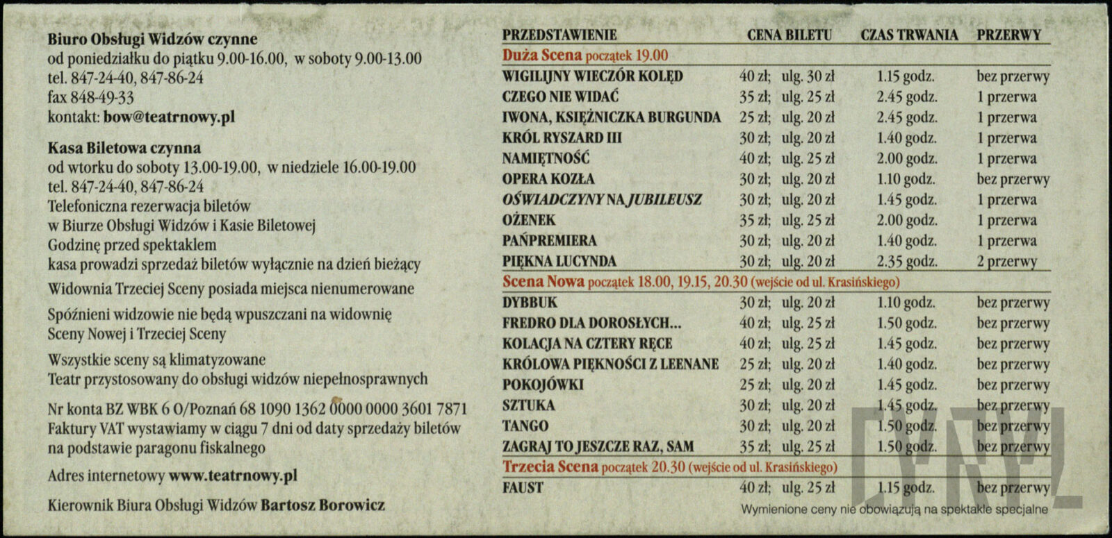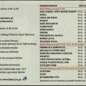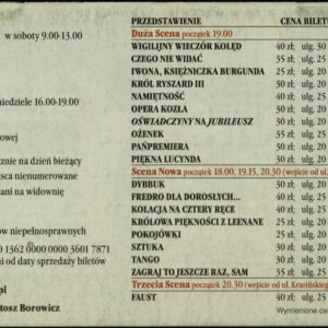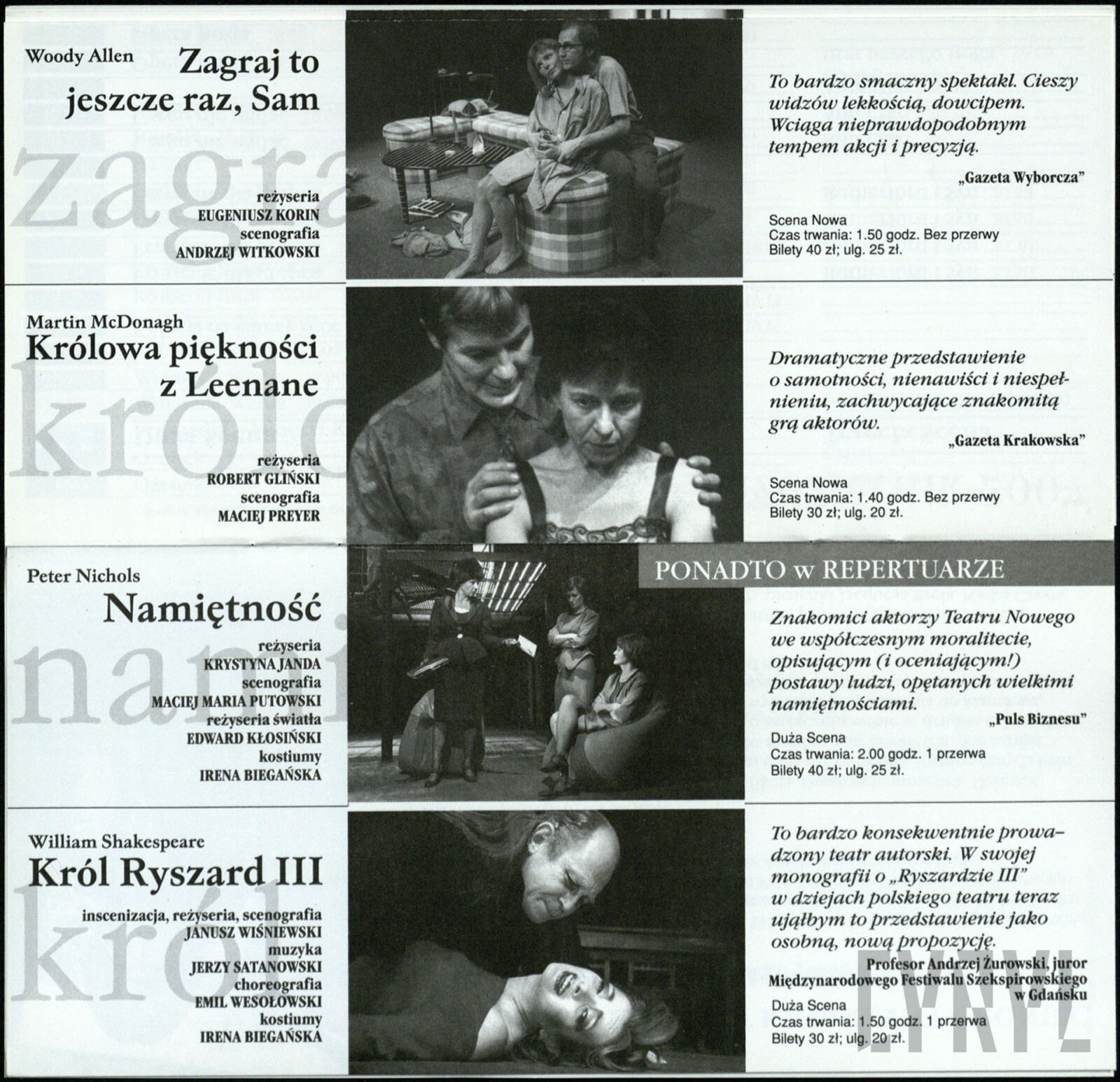 Repertuar Teatru Nowego w styczniu i lutym 2000 roku