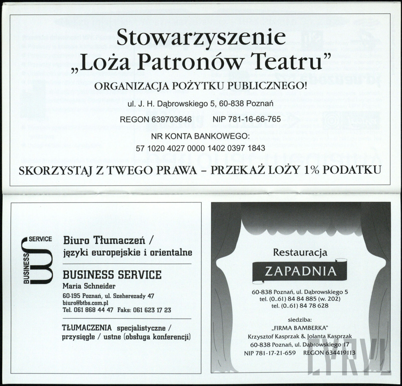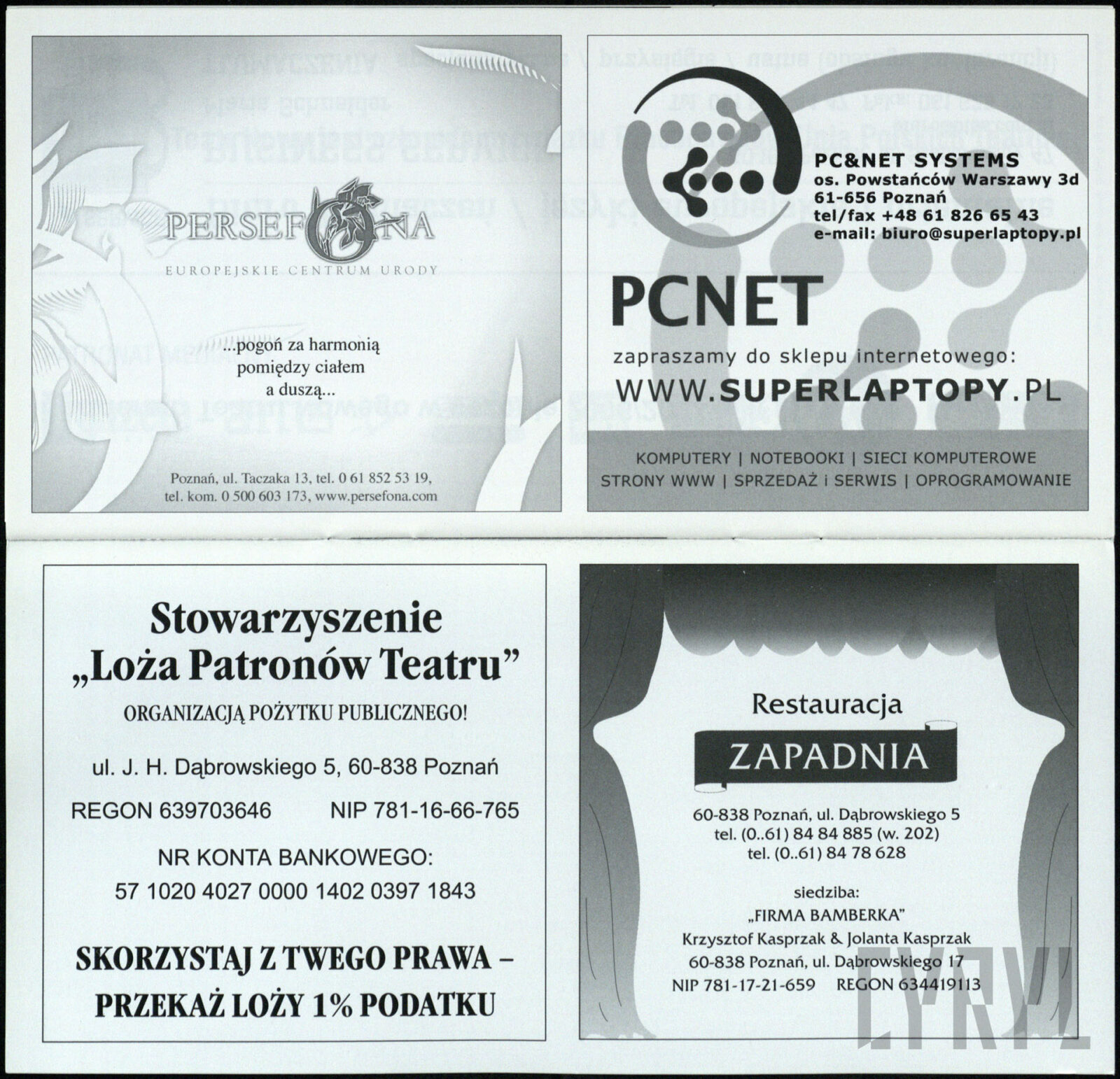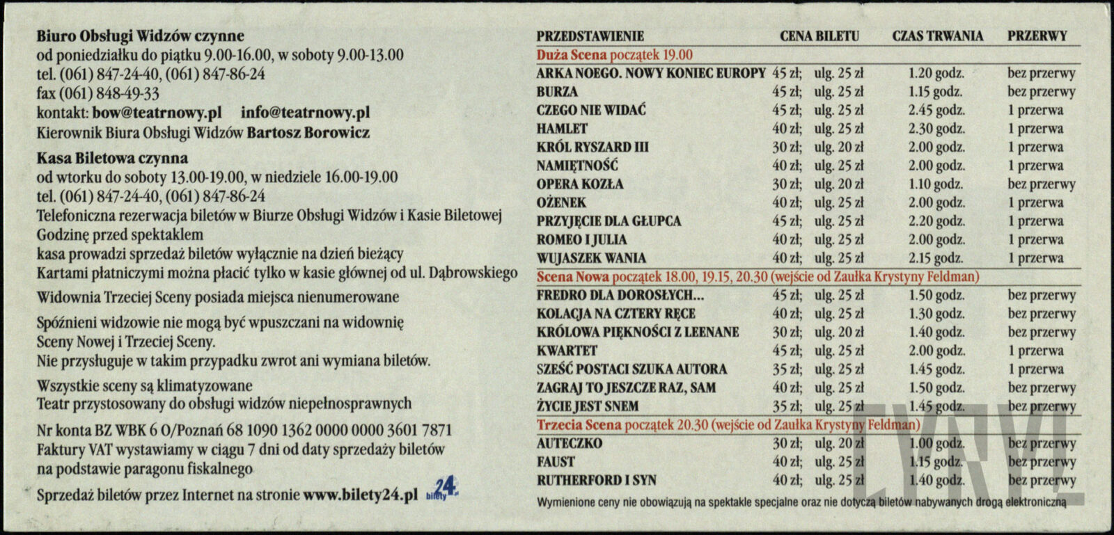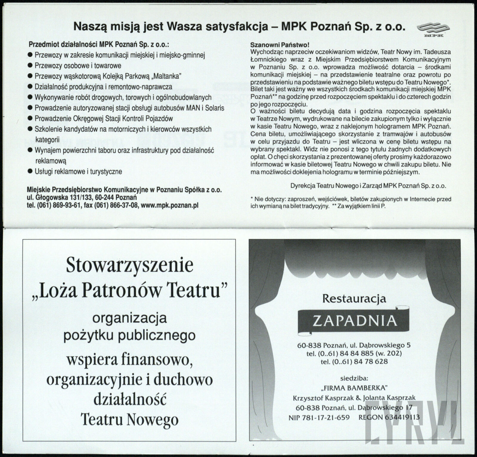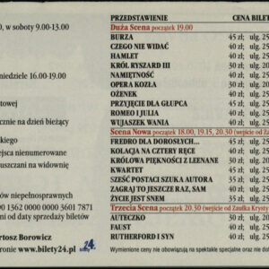 Repertuar Teatru Nowego w styczniu i lutym 2000 roku