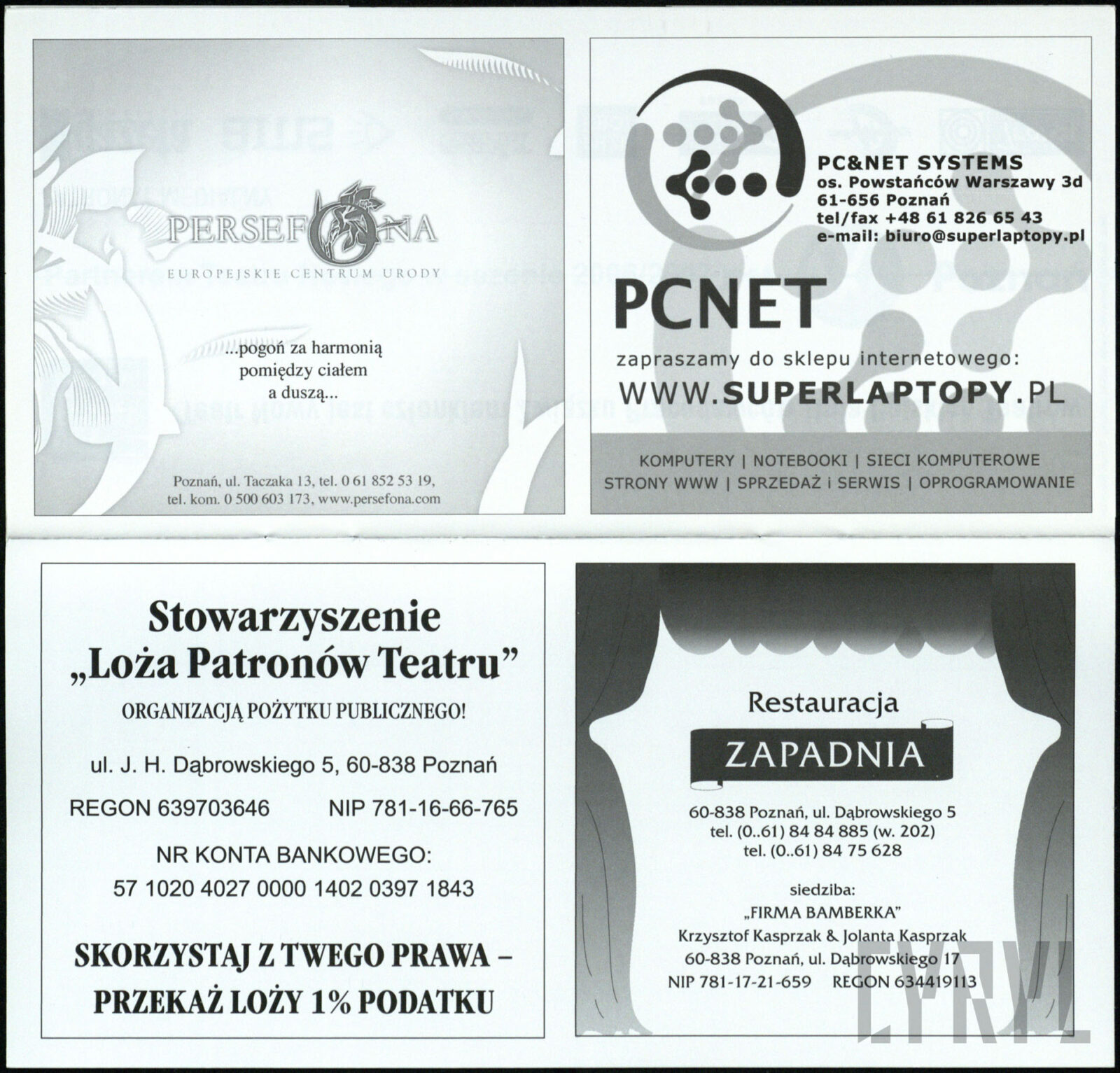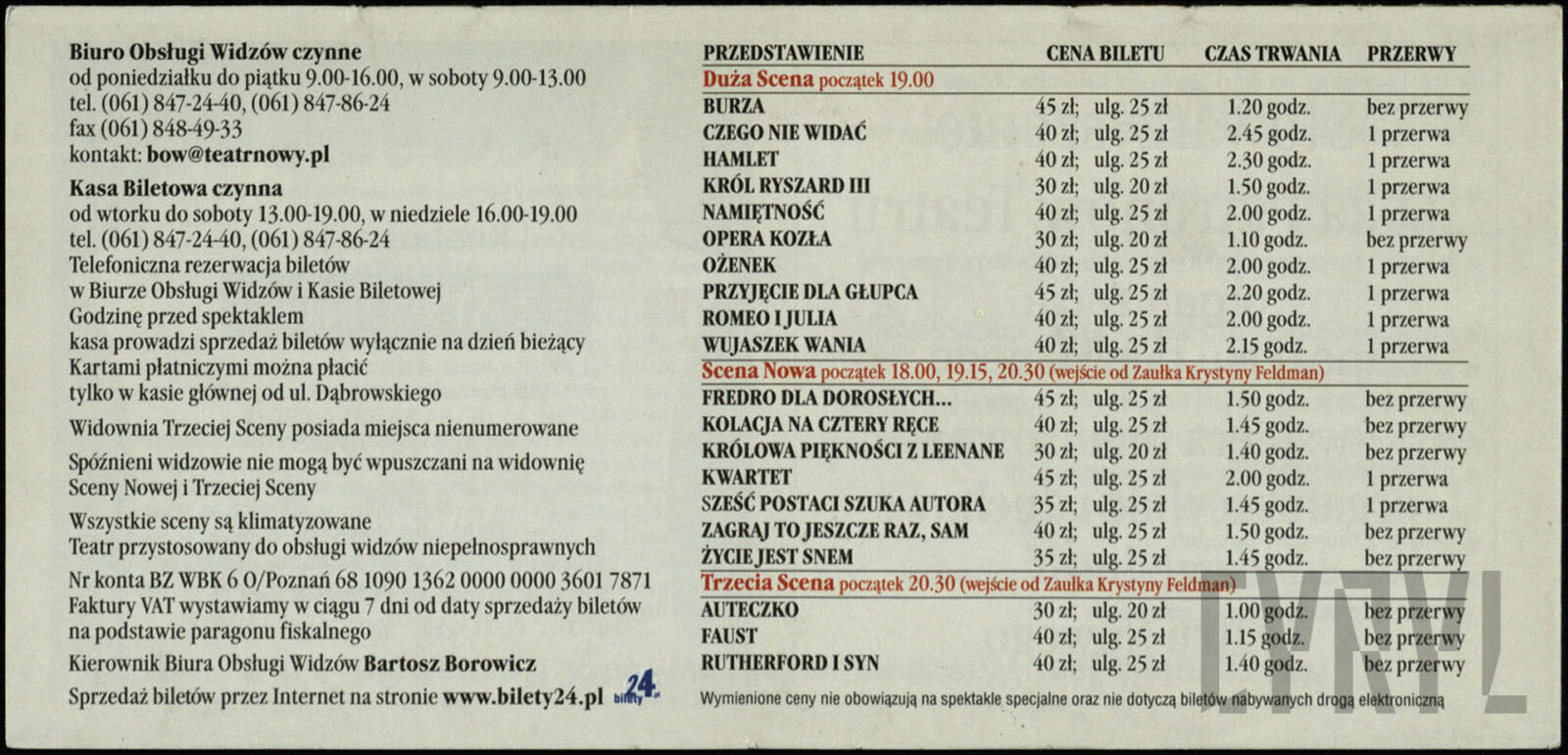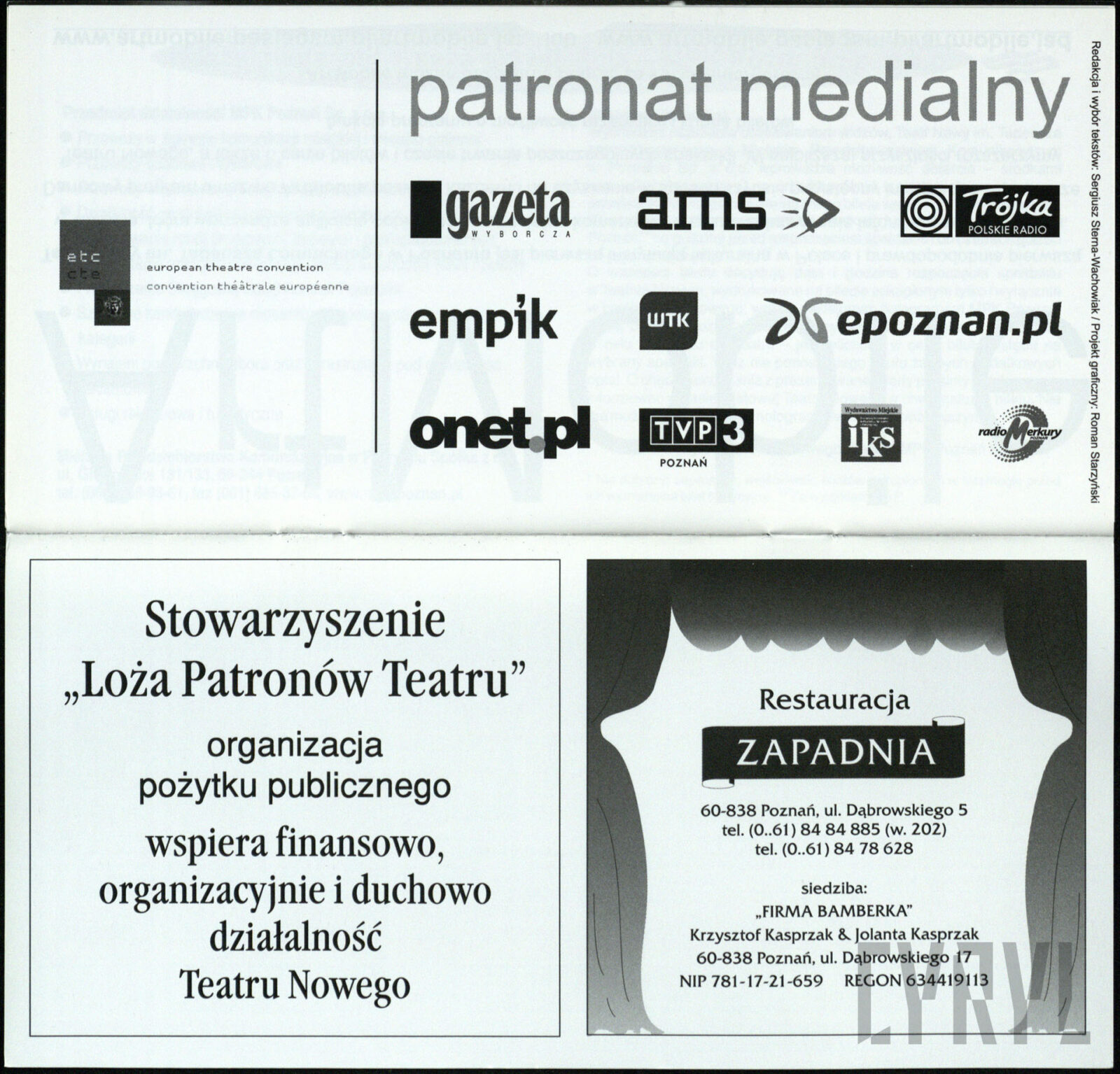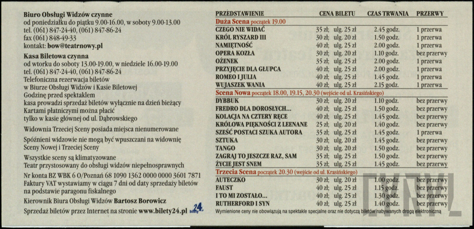 Repertuar Teatru Nowego w styczniu i lutym 2000 roku