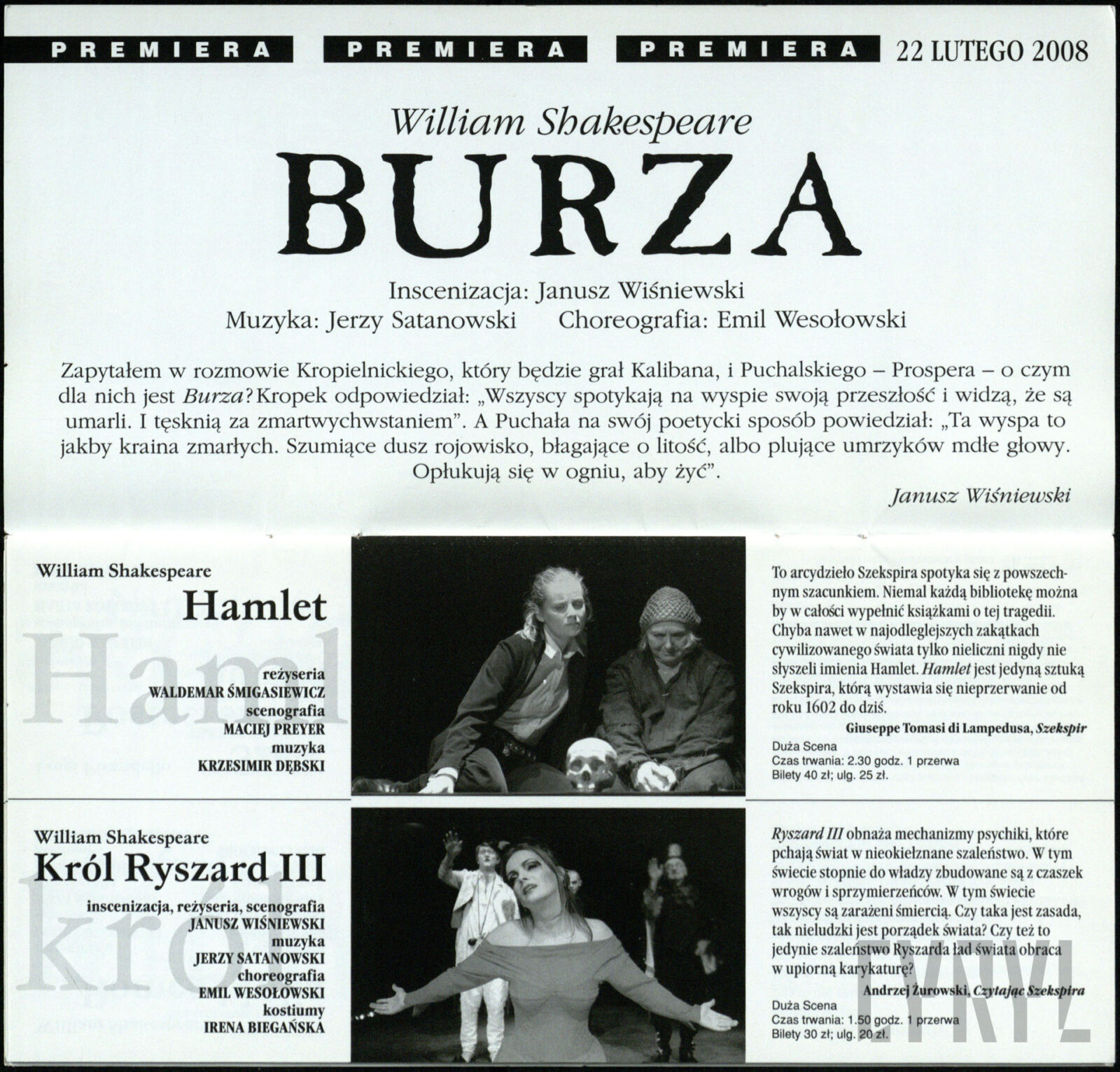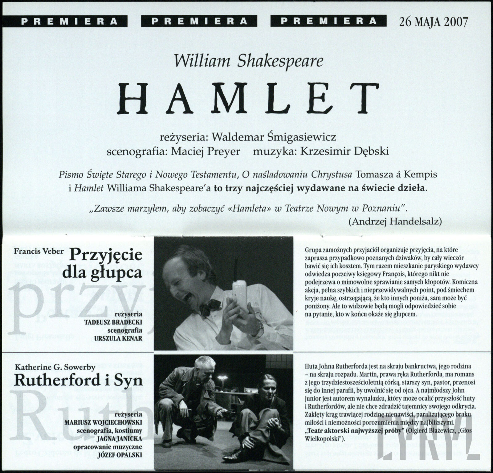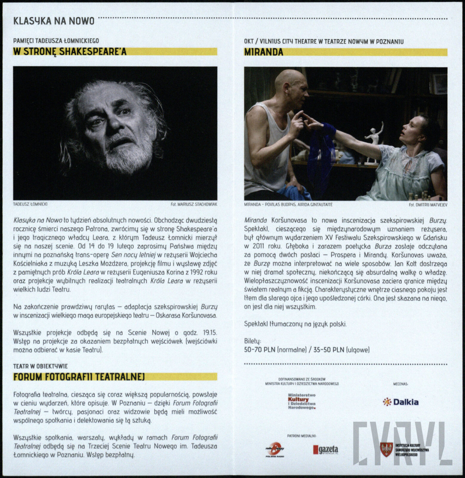 Program cyklu Klasyka na nowo, poświęconego patronowi Teatru Nowego Tadeuszowi Łomnickiemu