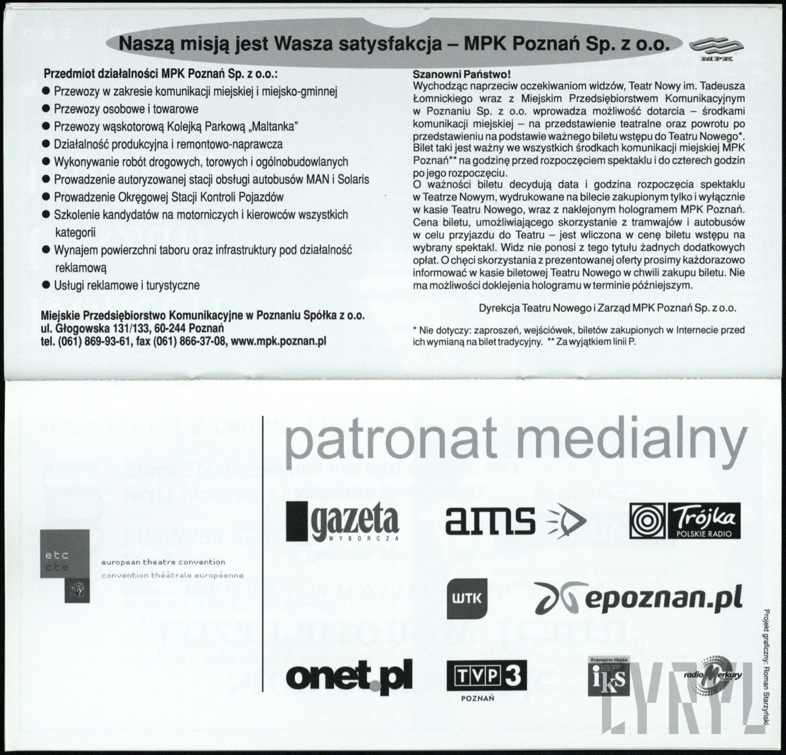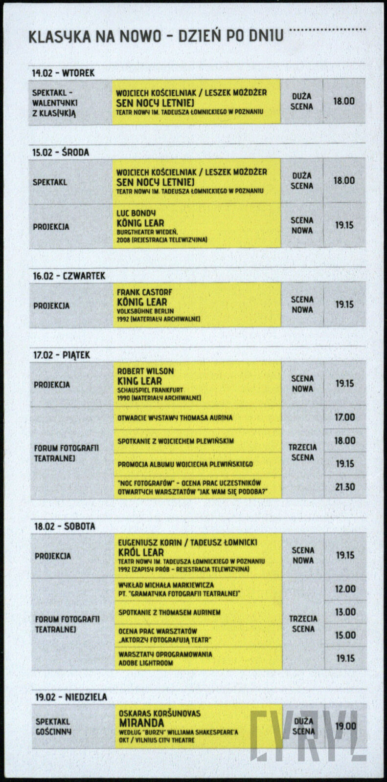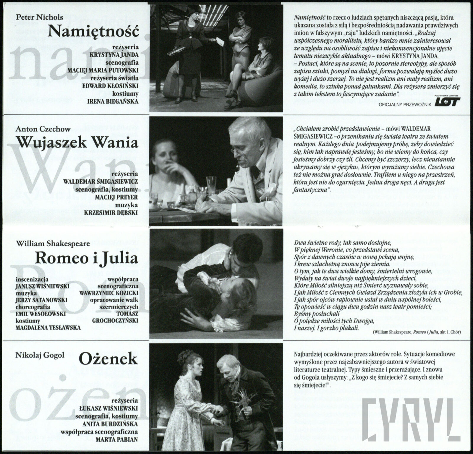 Program cyklu Klasyka na nowo, poświęconego patronowi Teatru Nowego Tadeuszowi Łomnickiemu