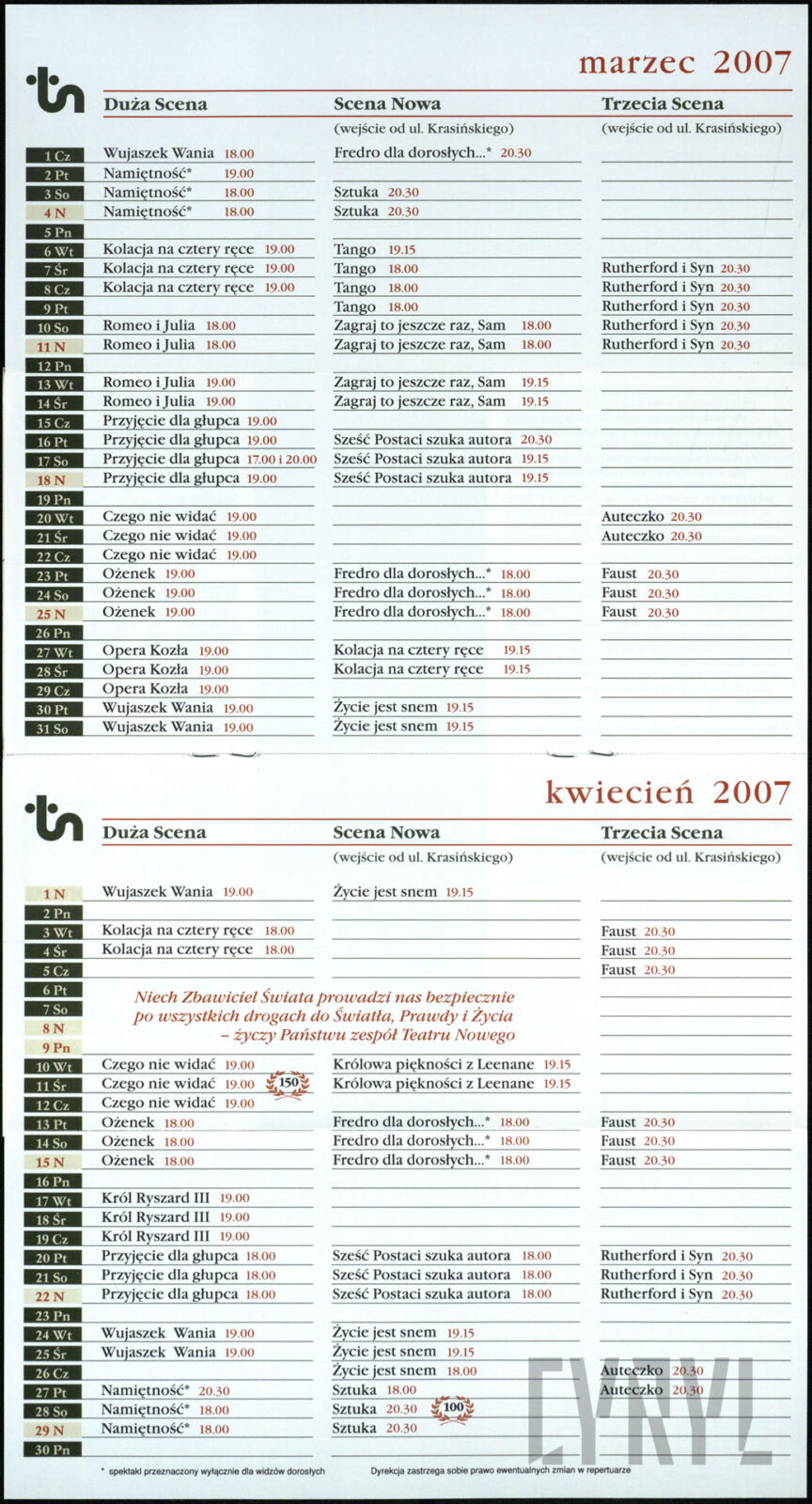 Repertuar Teatru Nowego w marcu i kwietniu 2007 roku