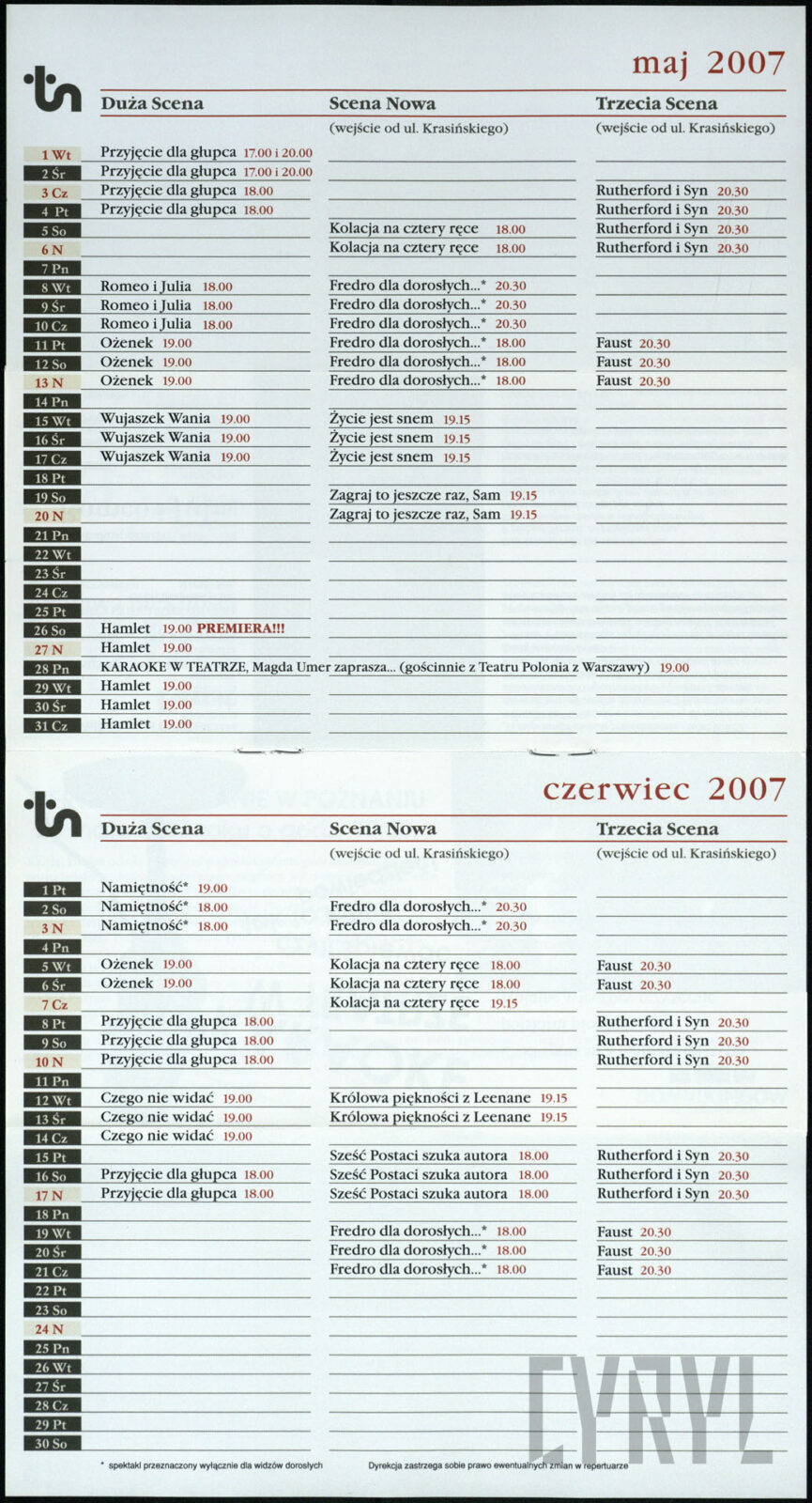 Repertuar Teatru Nowego w maju i czerwcu 2007 roku