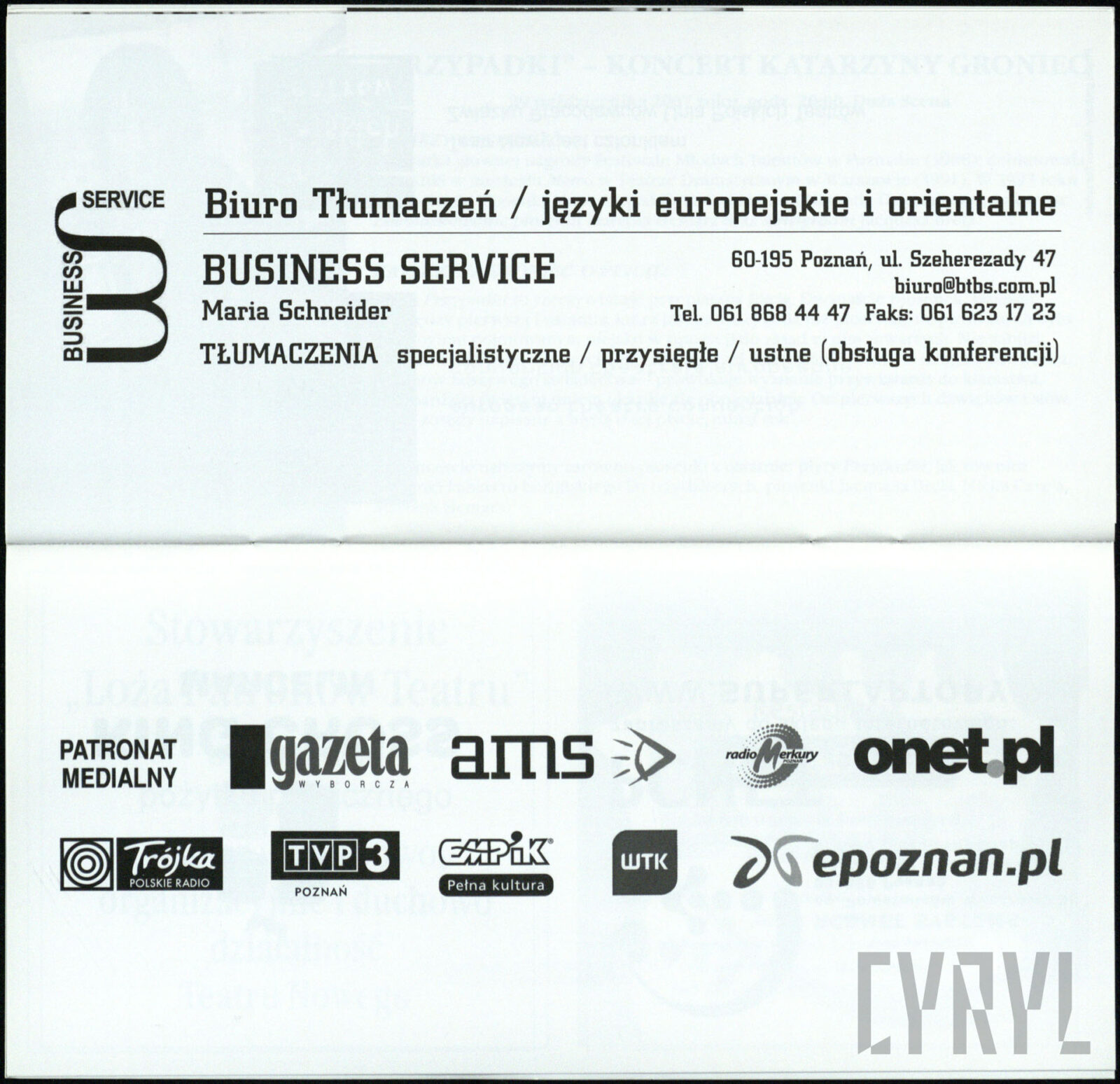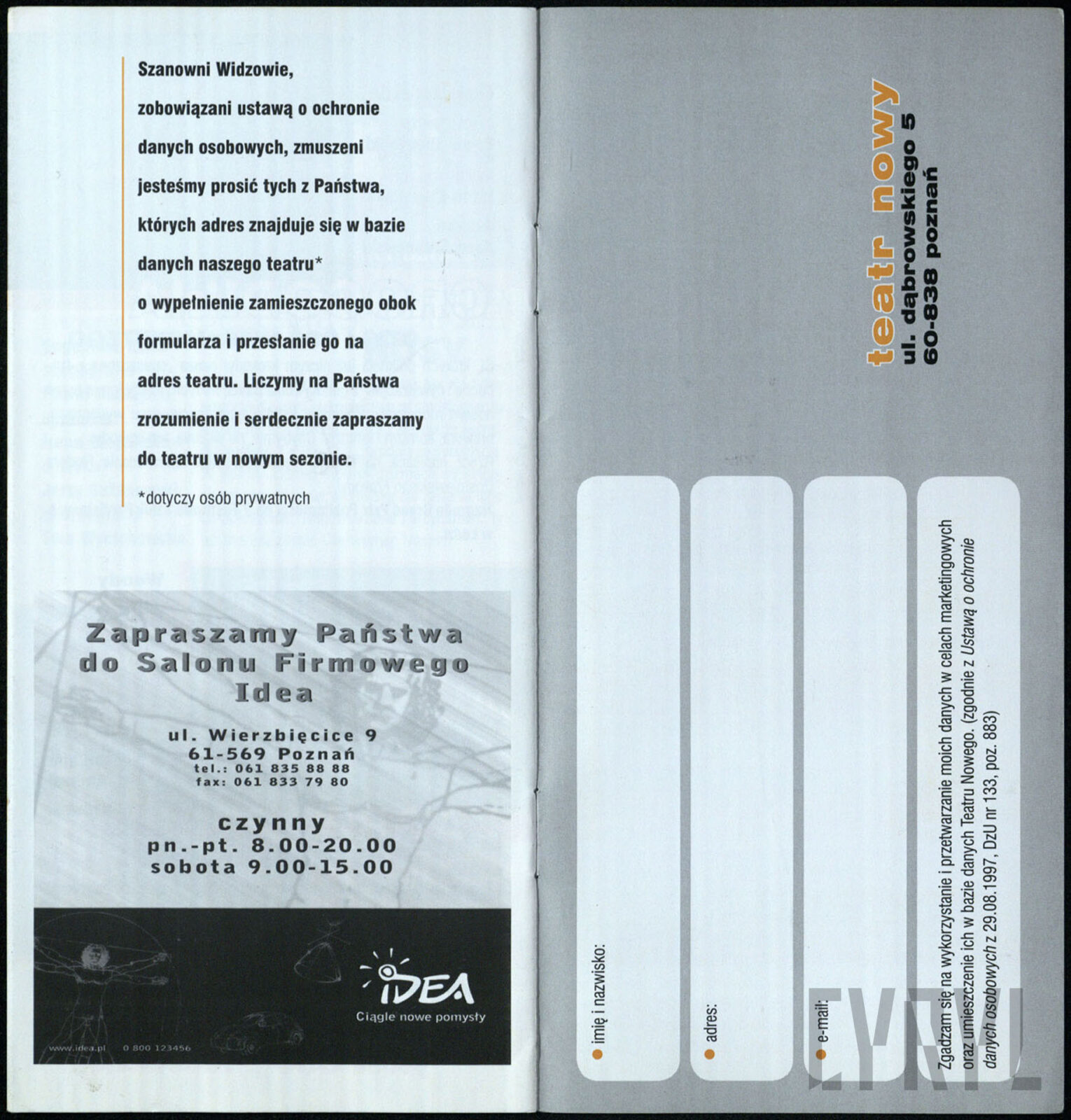 Repertuar Teatru Nowego w maju i czerwcu 2000 roku