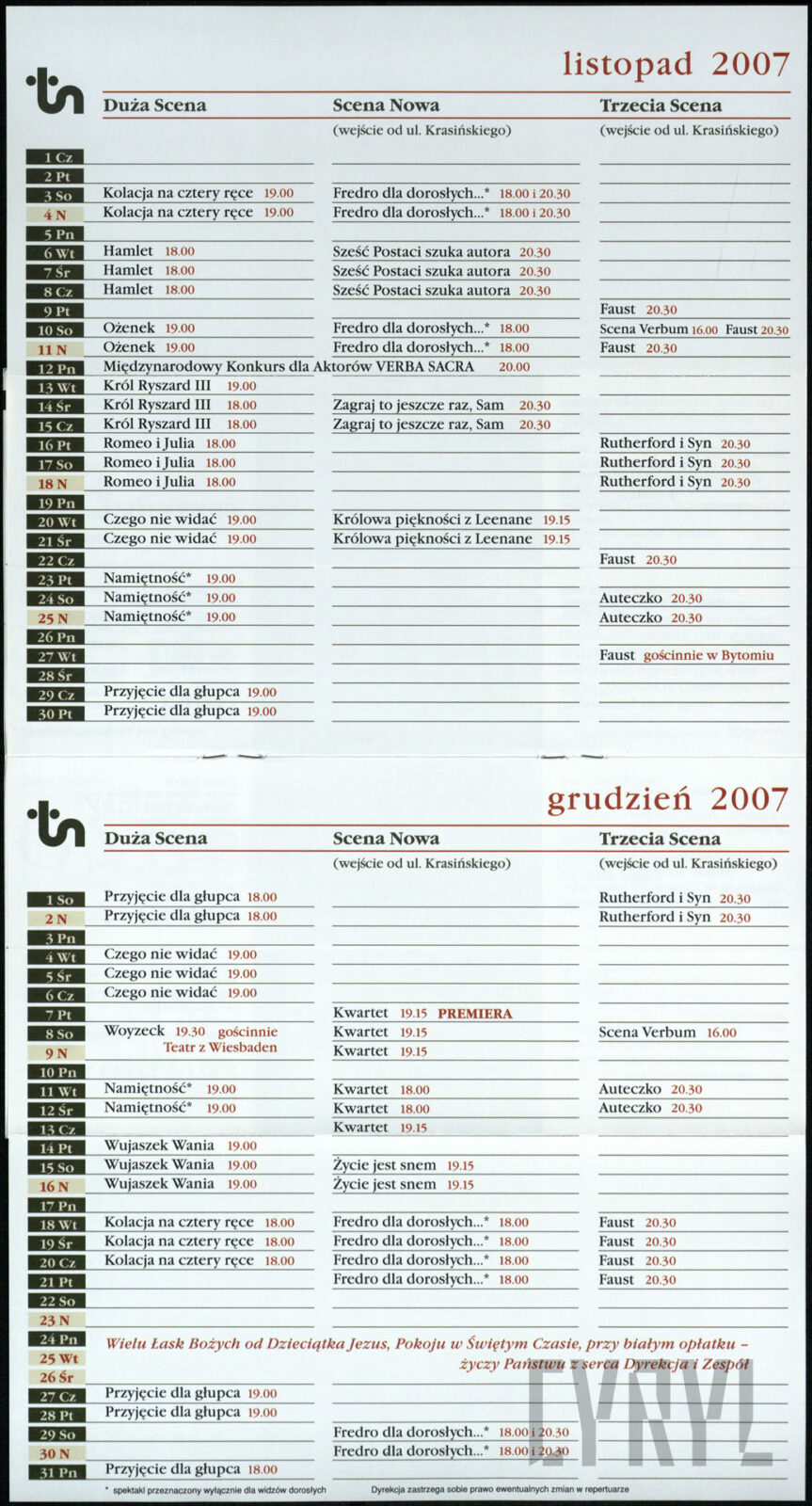 Repertuar Teatru Nowego w listopadzie i grudniu 2007 roku