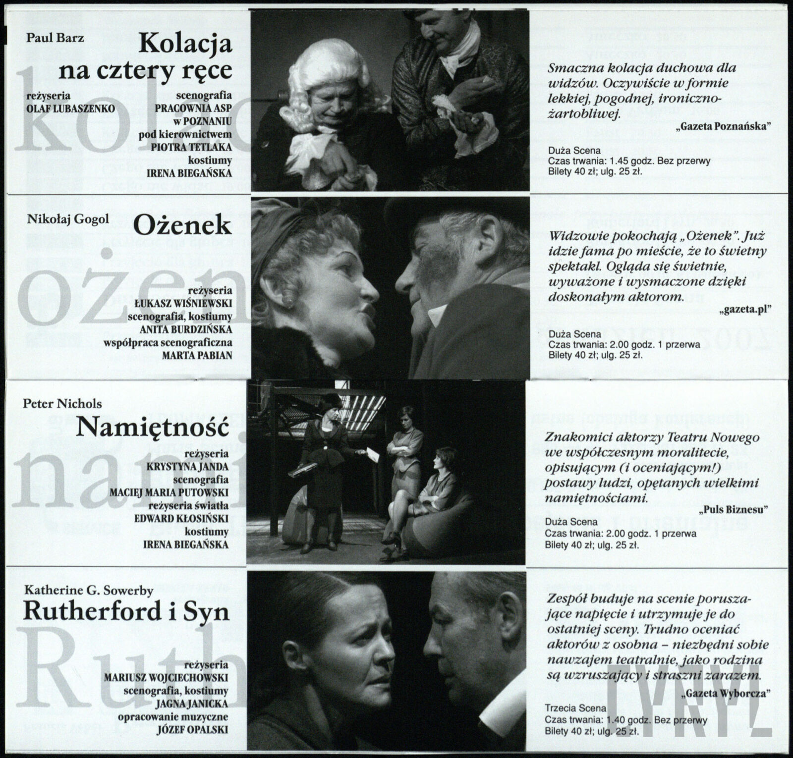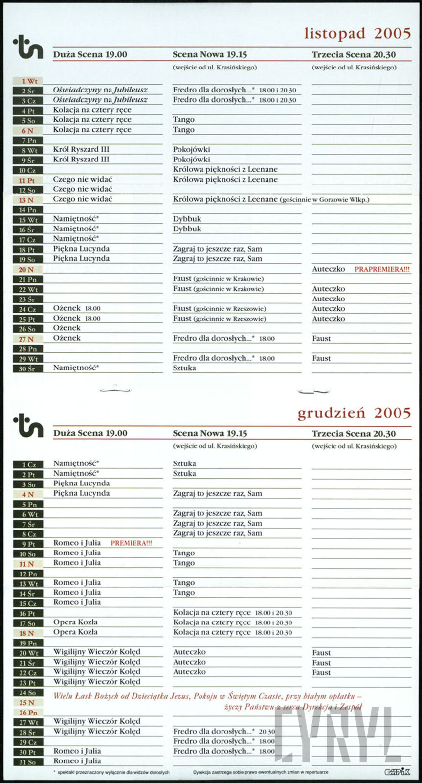Repertuar Teatru Nowego w listopadzie i grudniu 2005 roku