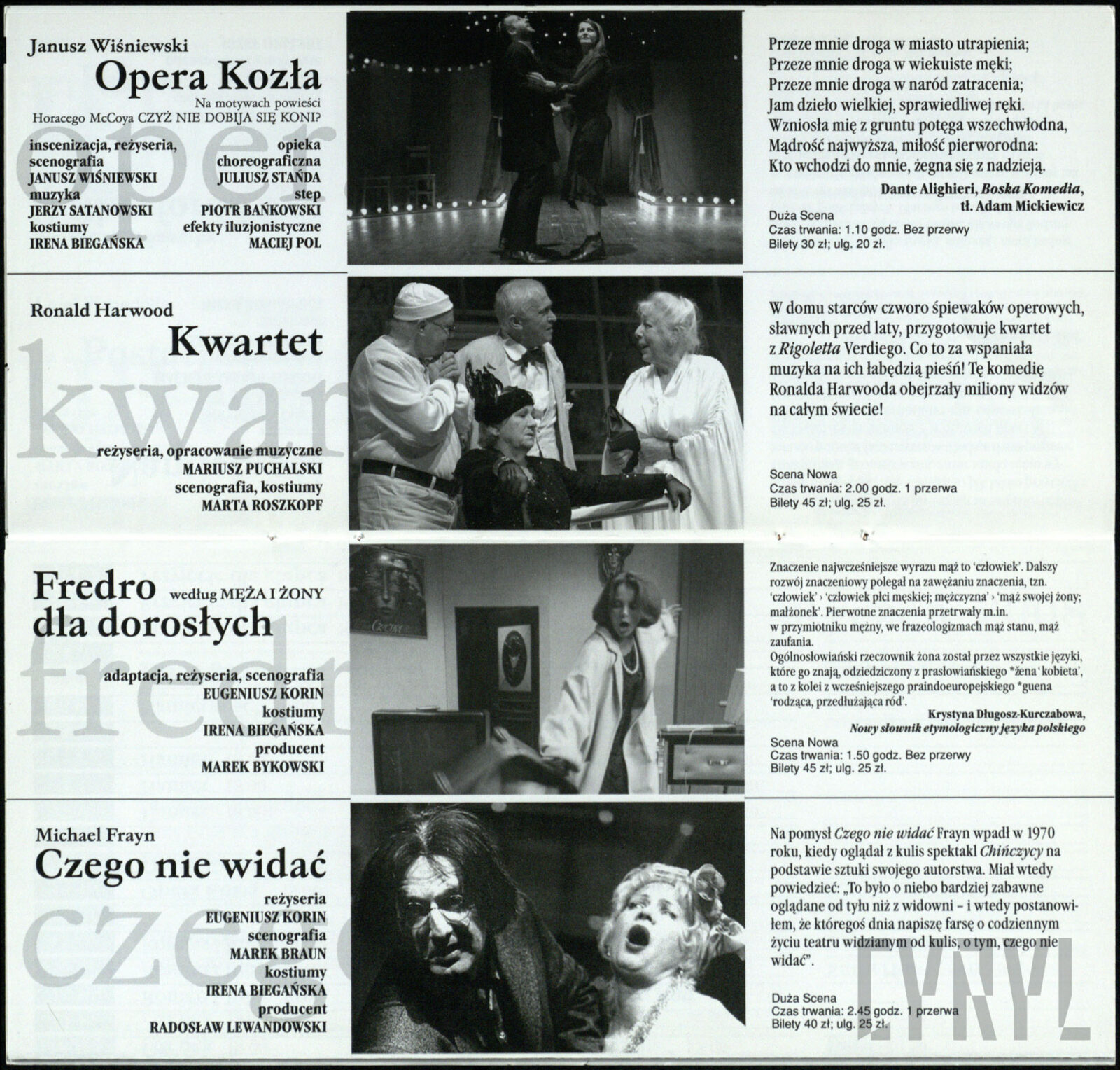 Repertuar Teatru Nowego od marca do kwietnia 1999 roku