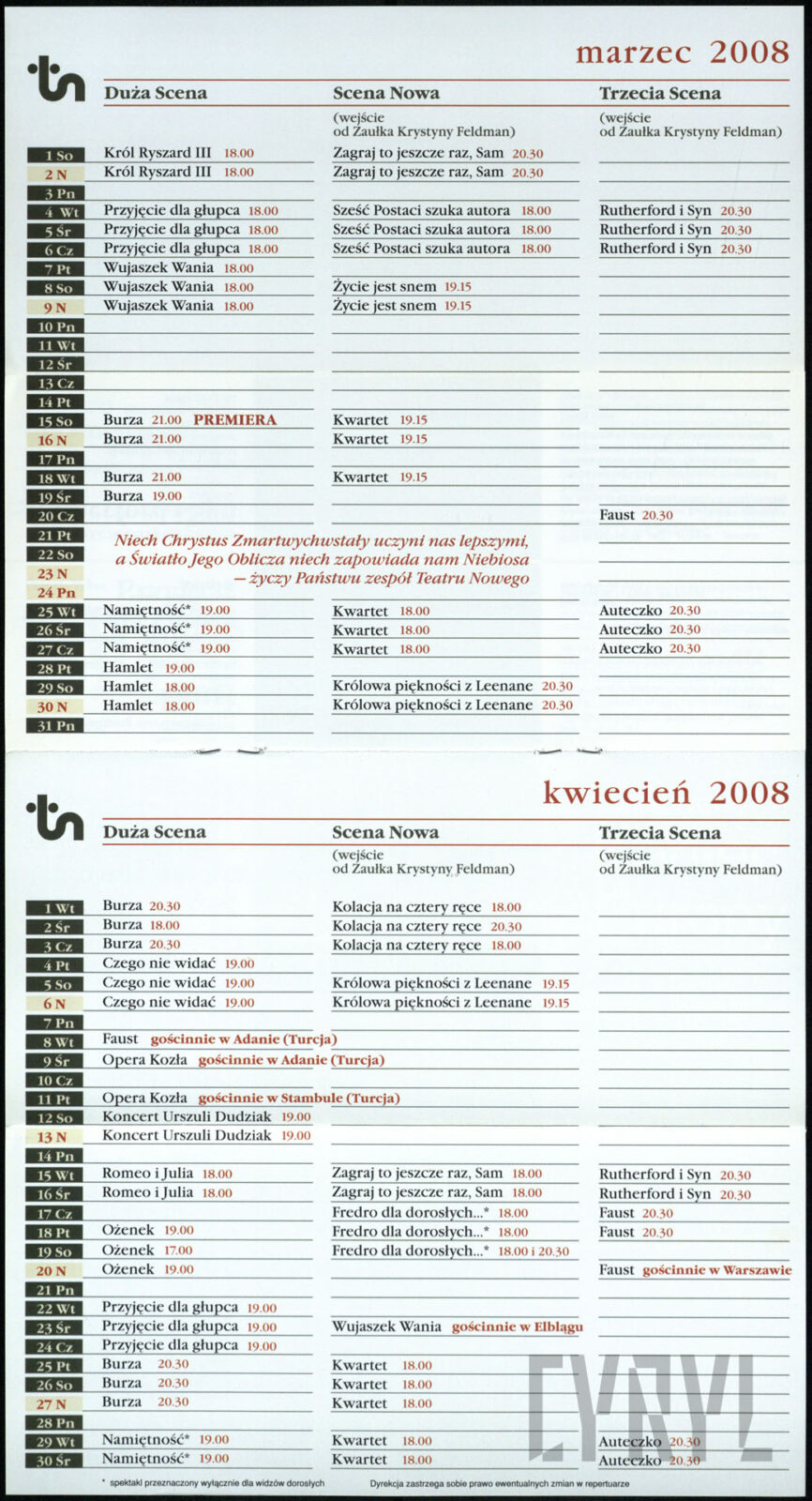 Repertuar Teatru Nowego w marcu i kwietniu 2008 roku