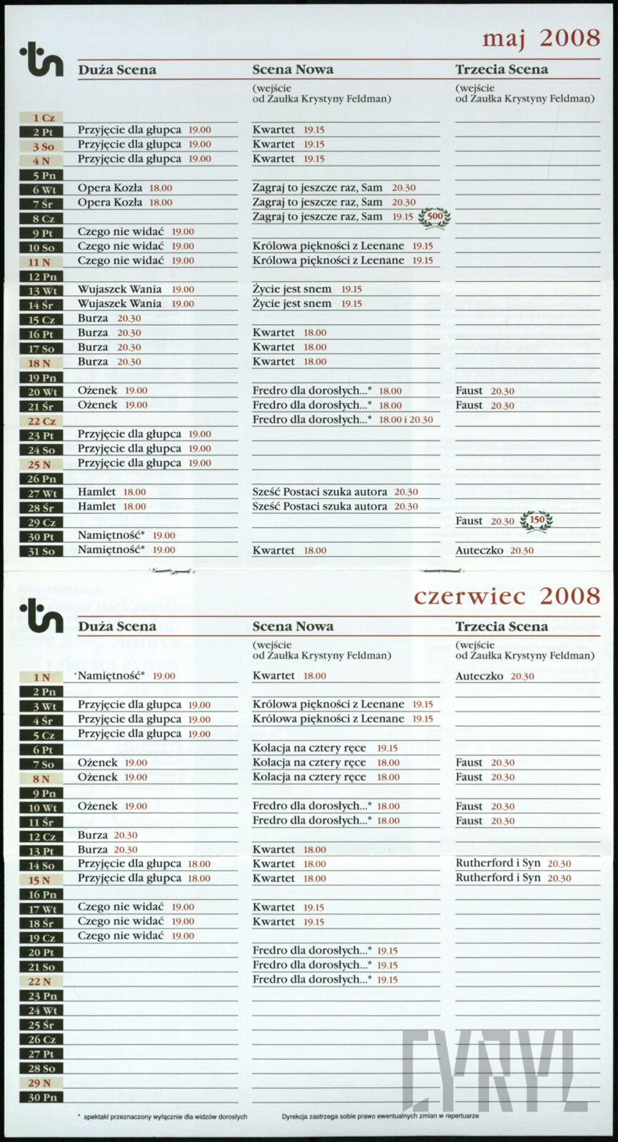 Repertuar Teatru Nowego w maju i czerwcu 2008 roku