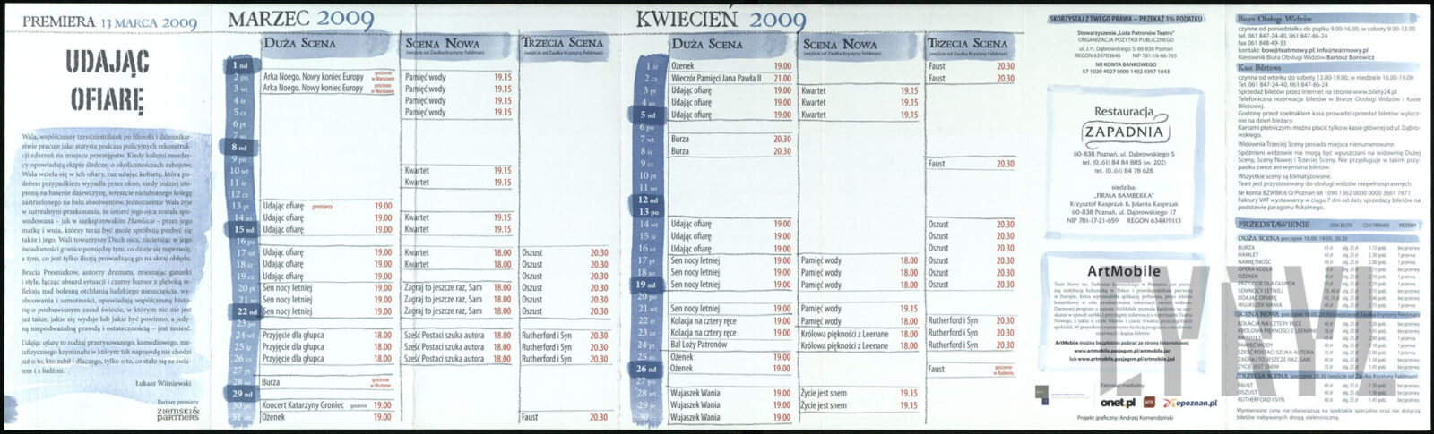 Repertuar Teatru Nowego w marcu i kwietniu 2009 roku
