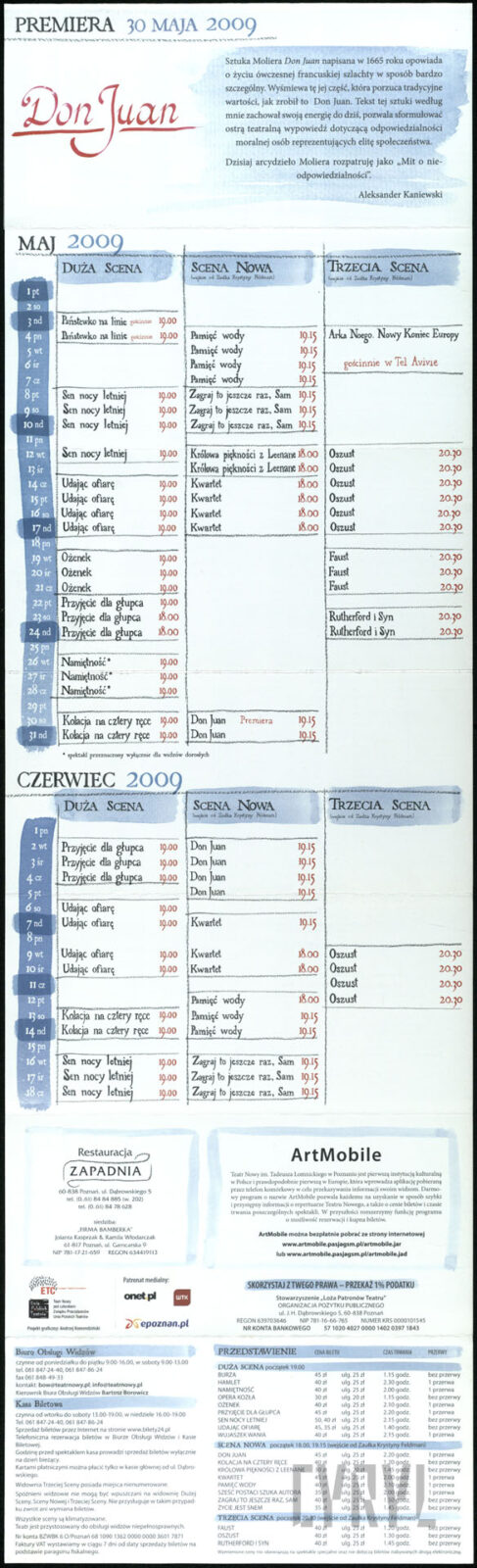 Repertuar Teatru Nowego w maju i czerwcu 2009 roku