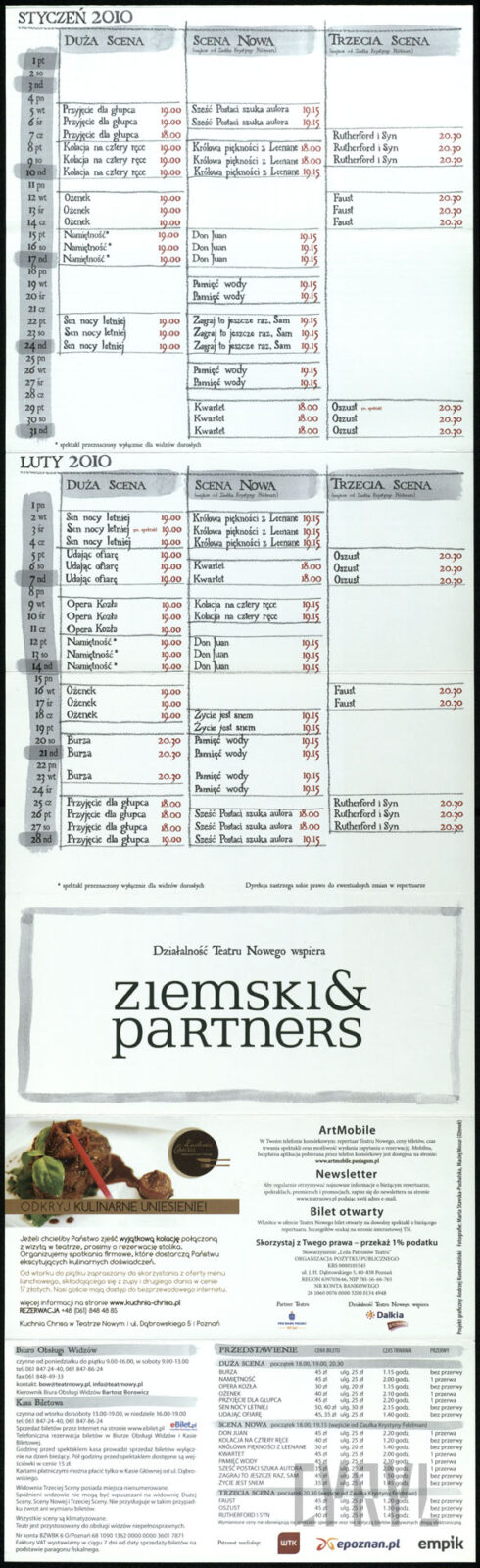 Repertuar Teatru Nowego w styczniu i lutym 2010 roku