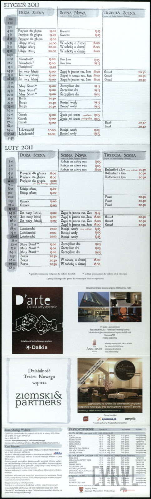 Repertuar Teatru Nowego w styczniu i lutym 2011 roku