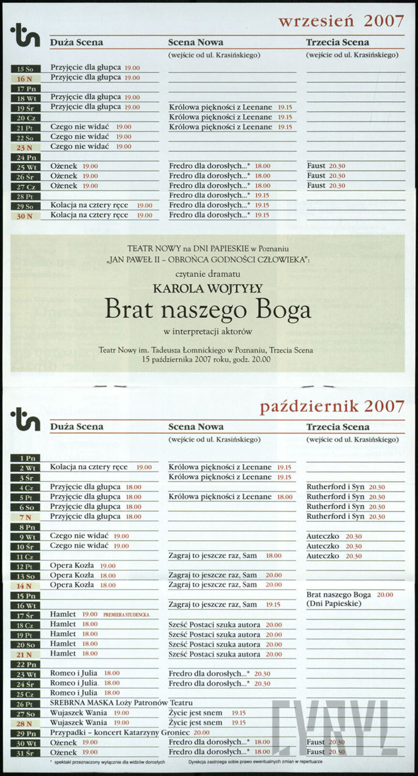 Repertuar Teatru Nowego we wrześniu i październiku 2007 roku